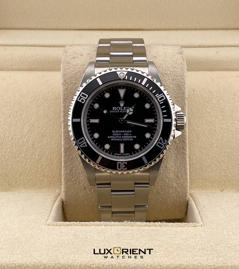 • Quadrante senza data: Il 14060M è apprezzato per la sua semplicità e pulizia del design, privo della finestra della data e della lente Cyclops.